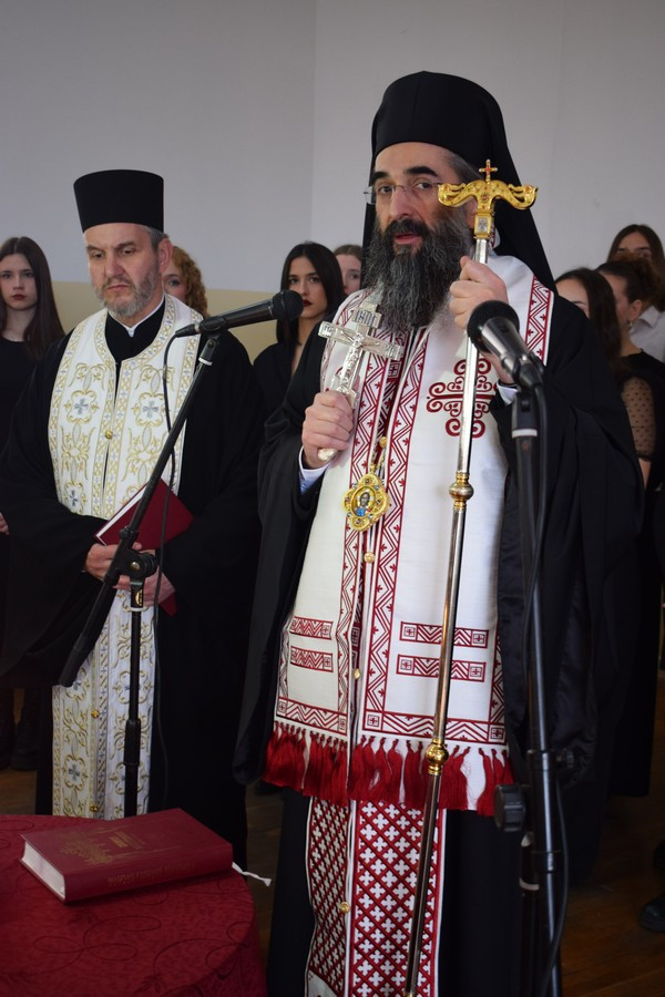 Овом приликом, Високопреосвећени Митрополит је осветио ово часно училиште. Учешће у чину освећења својим саслужењем узели су и протојереј Миодраг Павловић, Архијерејски намесник први нишки, јереј Драган Стефановић, парох други при храму Светог Василија Острошког у Нишу, јереј Никола Милић, парох доњоматејевачки и катихета Угоститељско-туристичке школе и ђакон Никола Ераковић.